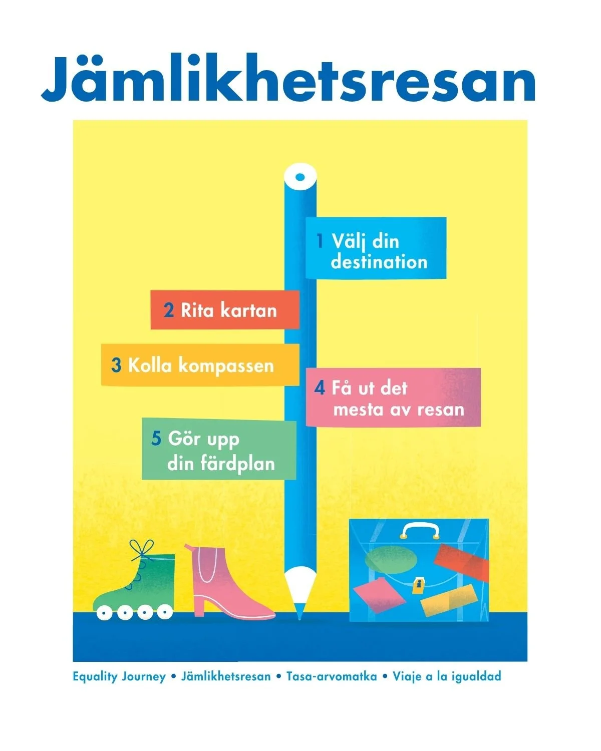 Jämlikhetsresan är ett verktyg som hjälper strateger och ledare att analysera, förstå och utveckla arbetet för jämlikhet och social hållbarhet.