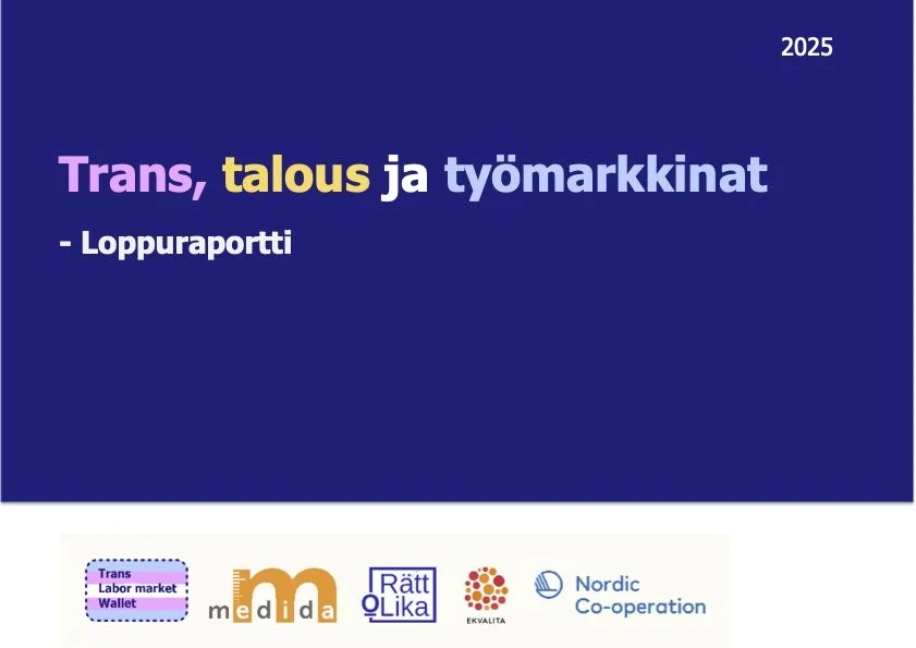 Trans, talous ja työmarkkinat -tutkimushanke toteutettiin vuoden 2024 ja alkuvuoden 2025 aikana. Tarkoituksena oli kerätä Suomessa ja Ruotsissa asuvien transihmisten työmarkkina-asemaan ja taloudelliseen tilanteeseen liittyvää yhdenvertaisuusdataa. Hankkeen rahoitti Pohjoismaiden ministerineuvosto Pohjoismaisen tasa-arvotiedon keskuksen NIKK:n LGBTI-rahaston kautta. Hankepäällikköinä toimivat Christina Ahlzén (Medida) sekä Lukas Romson (Rätt Olika). Kääntämisestä ja suomalaiseen kontekstiin soveltamisesta vastasi Ekvalita Ab. Yhteystiedot löydät alta.